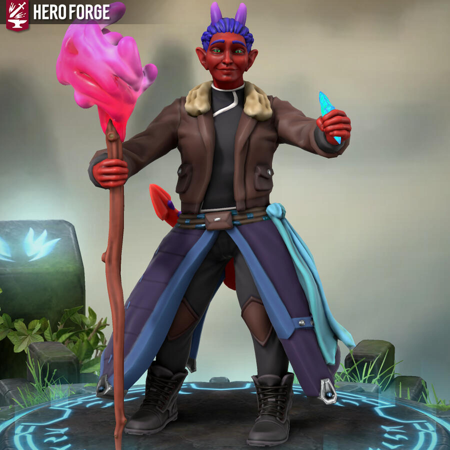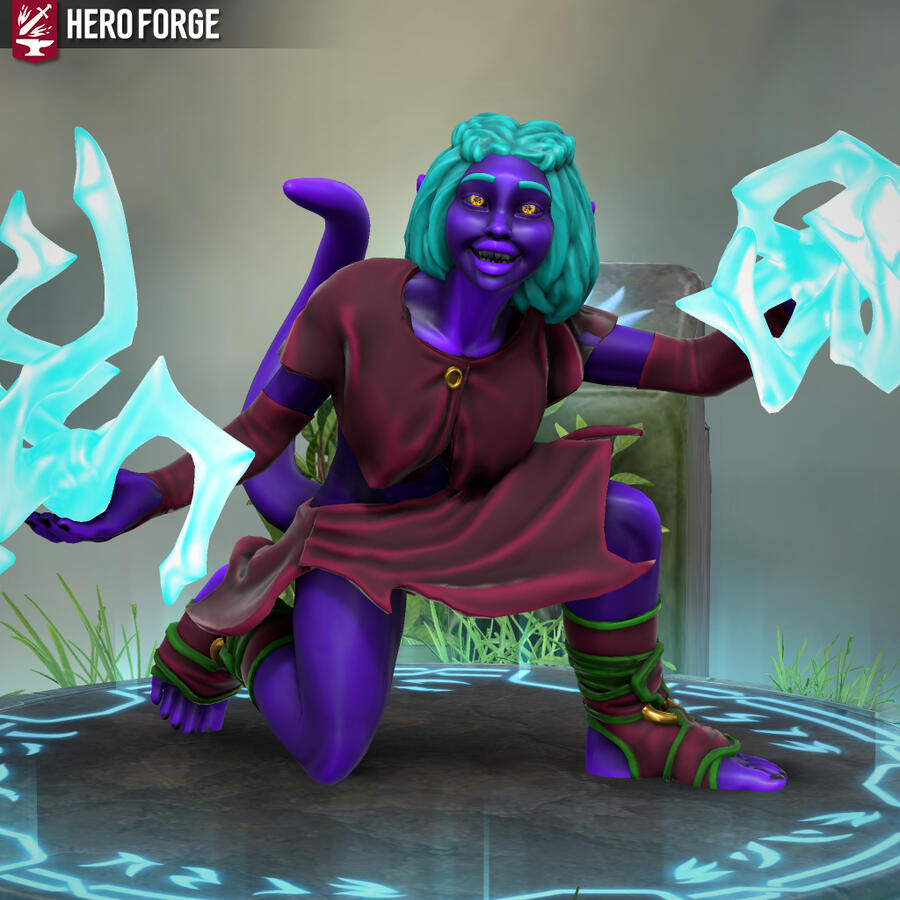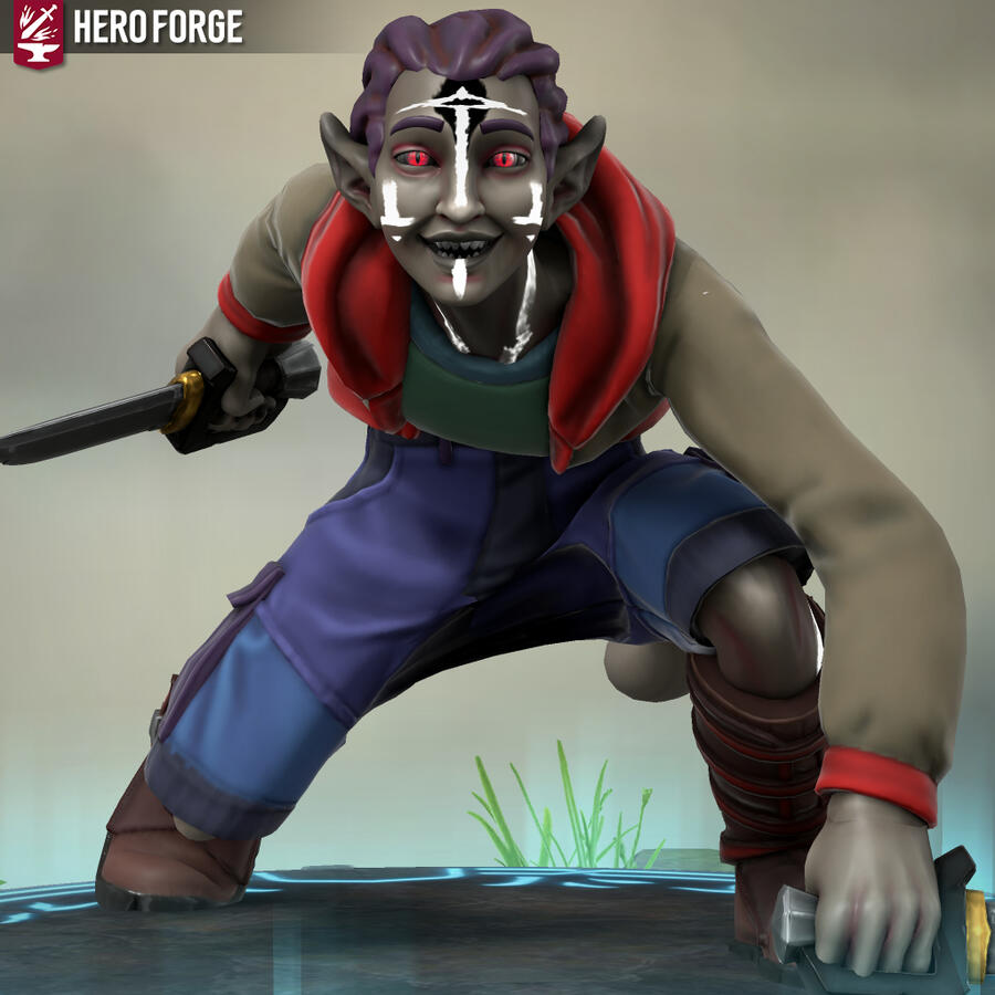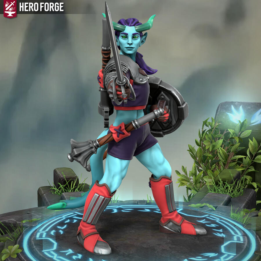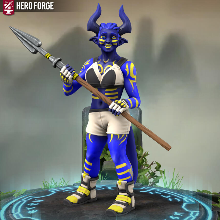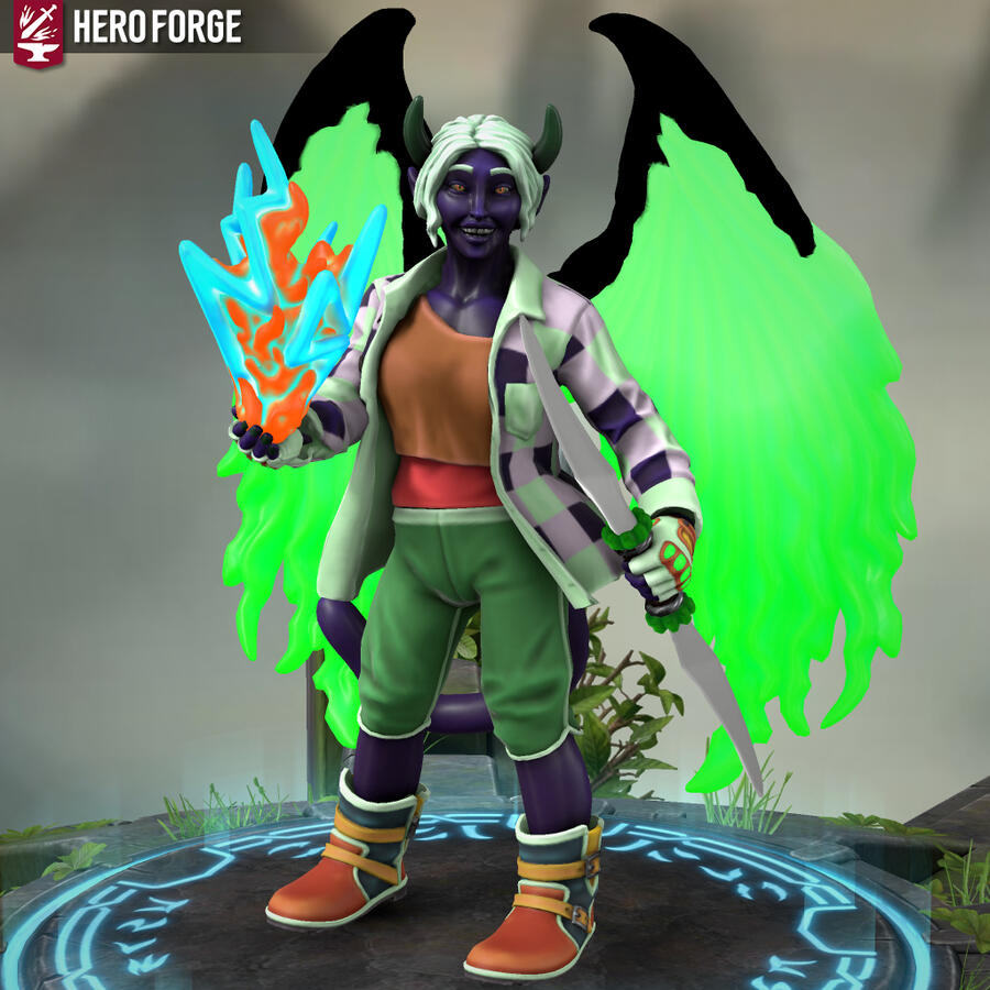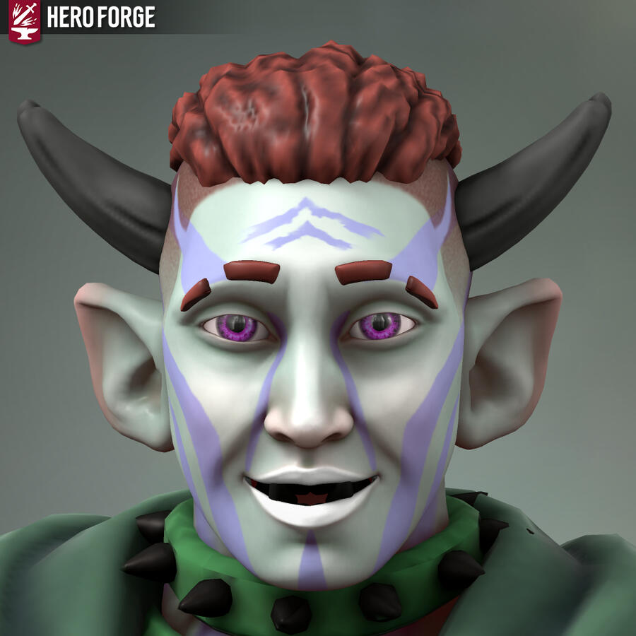Heyo, I'm Xfeingr! In your years, I'd be 20! Unfortunately, Hero Forge didn't have a decal for the grub scars [basically bony horn-like ridges] on my side, but it is what it is. Anyway, see ya!!