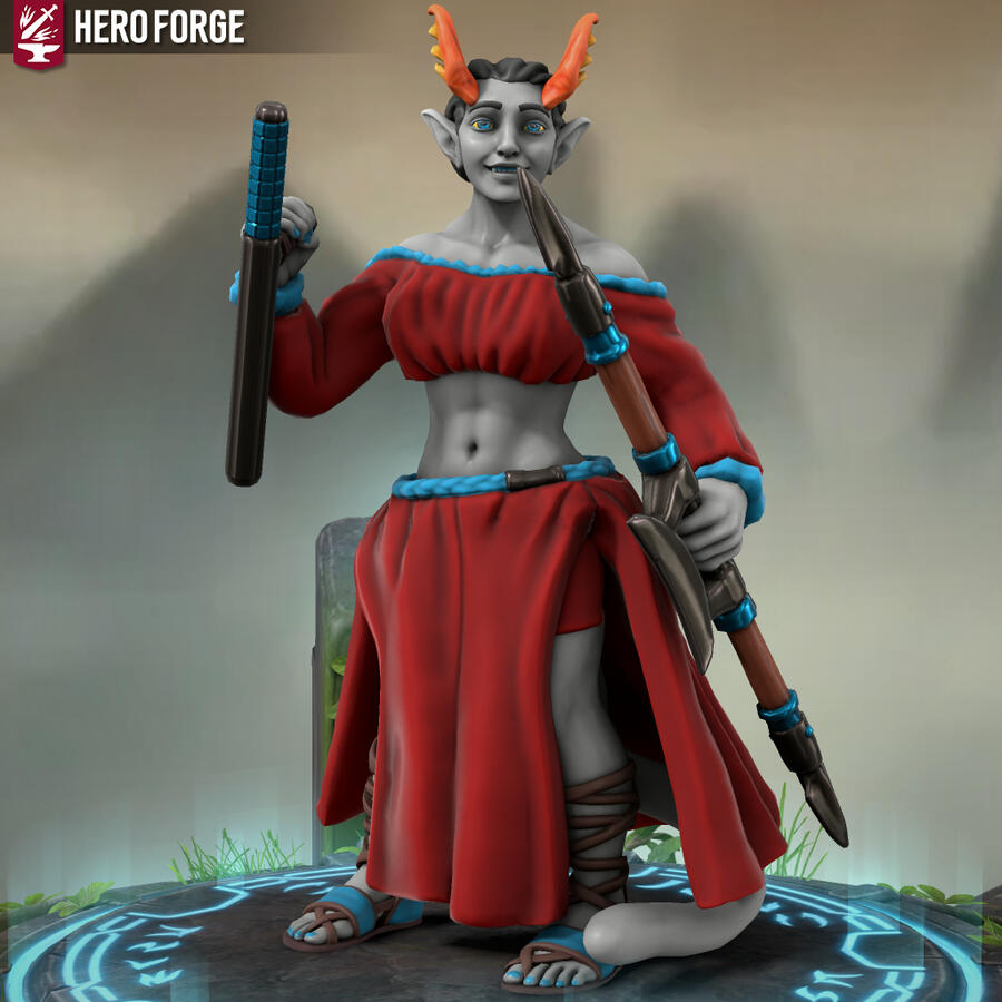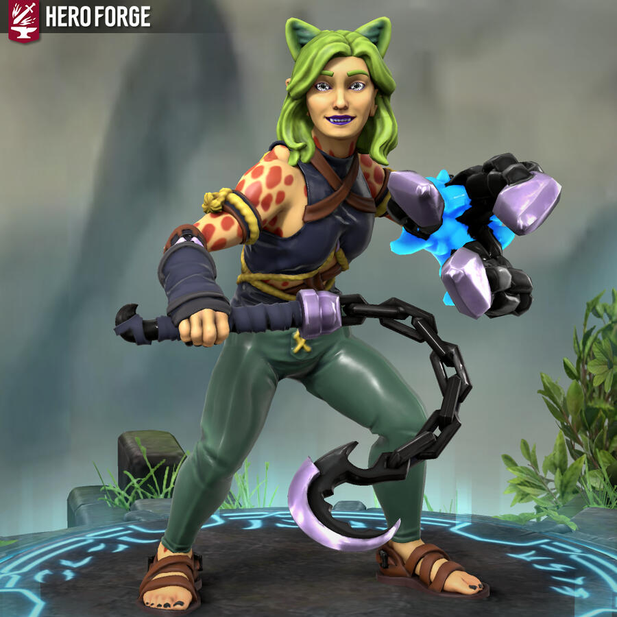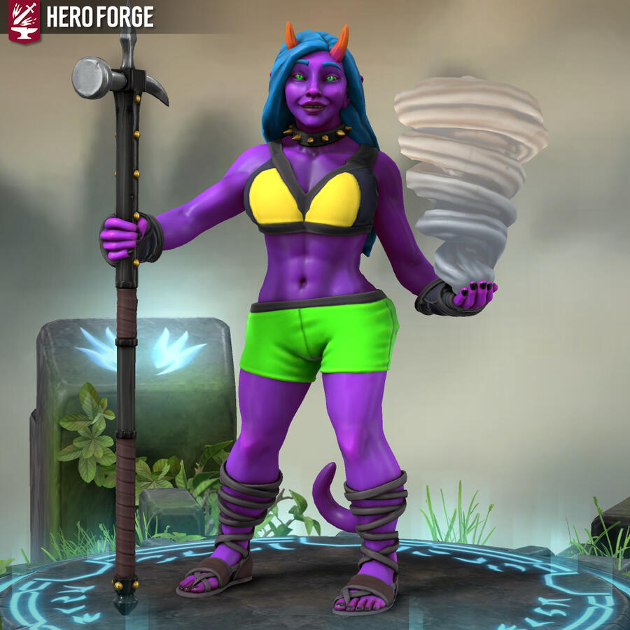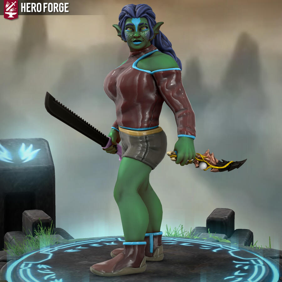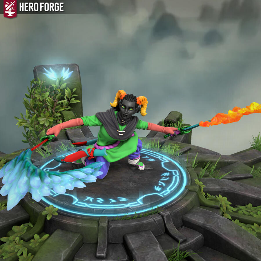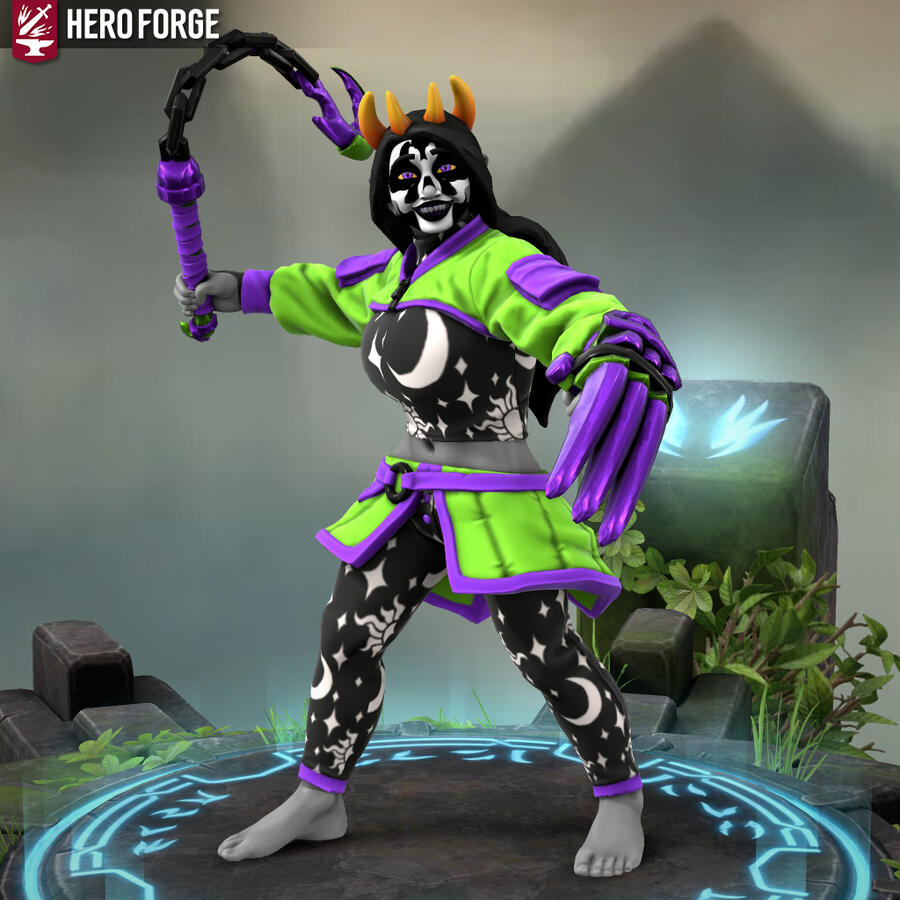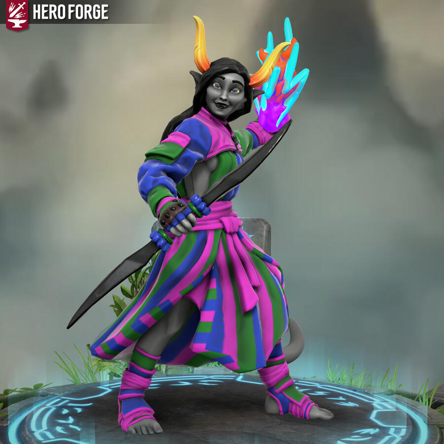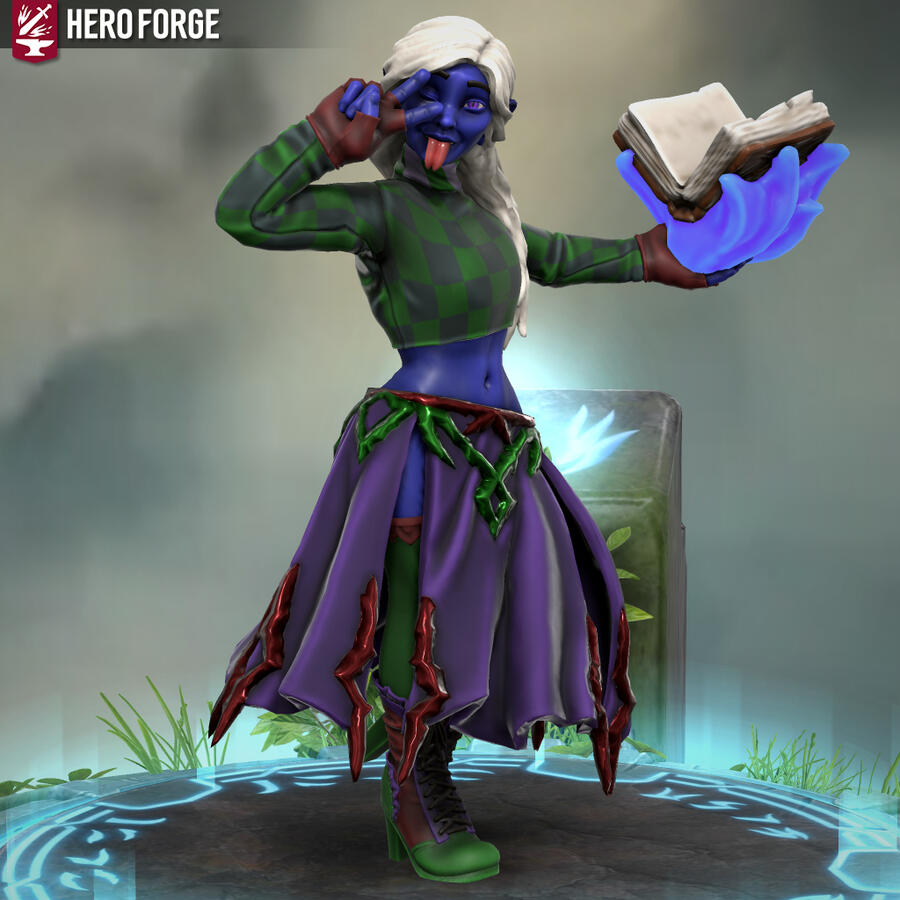 Heyo, I'm Xfeingr! In your years, I'd be 20! Unfortunately, Hero Forge didn't have a decal for the grub scars [basically bony horn-like ridges] on my side, but it is what it is. Anyway, see ya!!