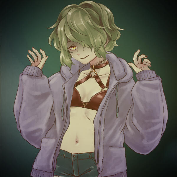 hwheyo!! i'm xynxith! by-your-years, i'd be 22, and any pronouns really work, id-really-k 'bout what's used for me. my head-mates have told me that having an uncovered-chest is considered inappropriate/nsfw in modern-human-culture, so i've unfortunately had to modify my outfit to conform to-those-standards. if you wanna see my actual-outfit, or what i wear when performing-at-the-circus, just let me know and i'll happily-show you!! any-way, that's all i got, so see ya 'round, probably!!!