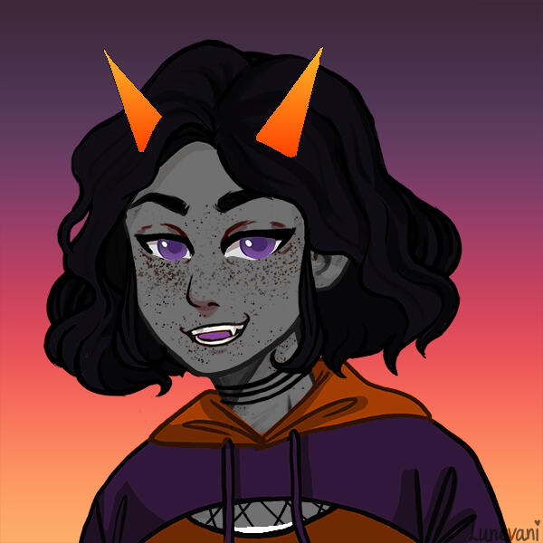 Hey hey hey!! I'm Thshirxa!!! In human years, I'm a little under 22, and I don't really care what pronouns you use for me as long as it's not he/him! See ya around!